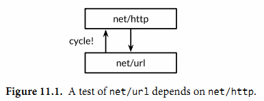 考虑下这两个包:net/url包,提供了URL解析的功能;net/http包,提供了web服务和HTTP客户端的功能。如我们所料,上层的net/http包依赖下层的net/url包。然后,net/url包中的一个测试是演示不同URL和HTTP客户端的交互行为。也就是说,一个下层包的测试代码导入了上层的包。